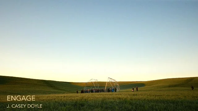 On June 25, 2016, on the eve of the one-year anniversary of the legalization of same sex marriage by the supreme court and the one-year anniversary of Latah county, J. Casey Doyle and Mario Montes, performed an art work entitled Engage and wed in a wheat field on Harden Farm in Moscow, Idaho. At dawn two rings emerged from the wheat field, pulled towards each other by partners of 14 years. The trek was one of labor but with help from friends, family, a community we were able to achieve our goal—a celebration of the journey we've (a nation) embarked on and the opportunity for marriage equality.