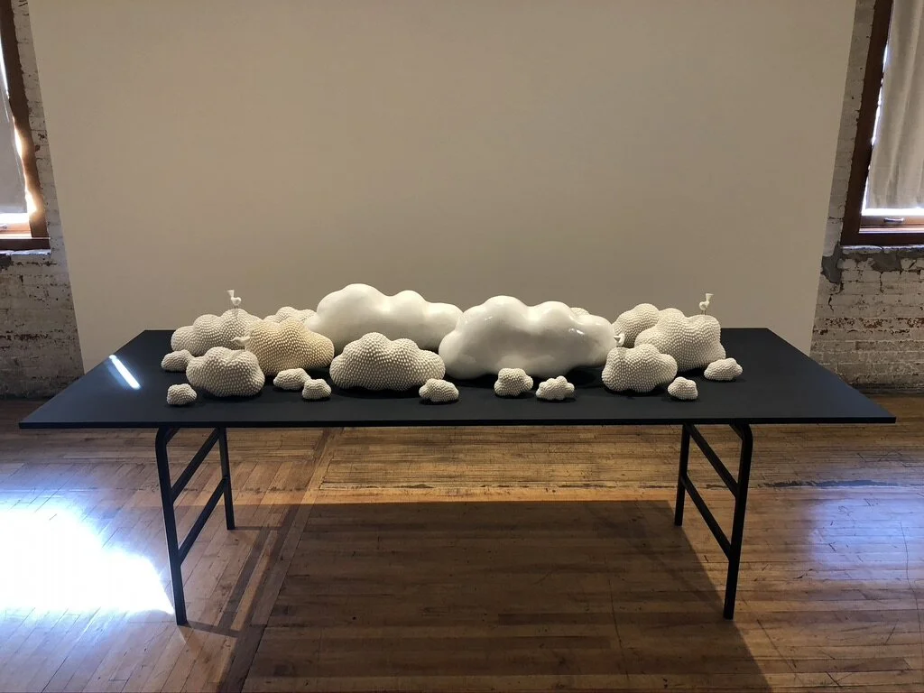 Real and imagined spaces; environments constructed to evoke a sense of calm; finding joy in moments, big or small, tangible or surreal; Where the Air is Clear is a body of sculptural works that celebrate reconnecting, centering, and finding one's breath. These works attempt to capture moments of joy, stimulating the senses through repetition of form, texture, and sound.